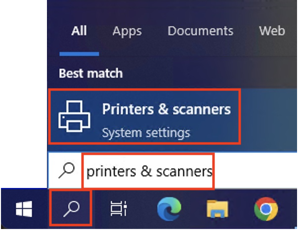 1. To add a printer press Black search icon icon and search for: printers & scanners as shown